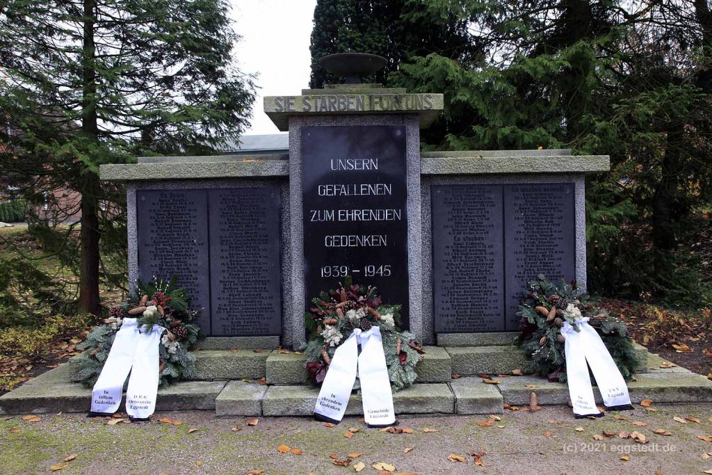 Zum Volkstrauertag legten die Eggstedter Gemeinde und die Vereine Kränze an den Gedenksteinen am Ehrenmal nieder. In seiner Ansprache gedachte